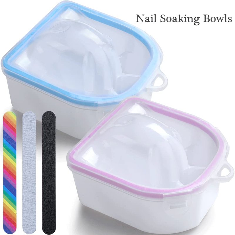 Nail Soaking Bowl, Borogo 2PCS Soak Off Gel Polish Dip Powder Remover Manicure Bowl for Acrylic Nails, Nail Brush, Cuticle Pusher, Cuticle Peeler, 100/180 Nail File, Buffer Block