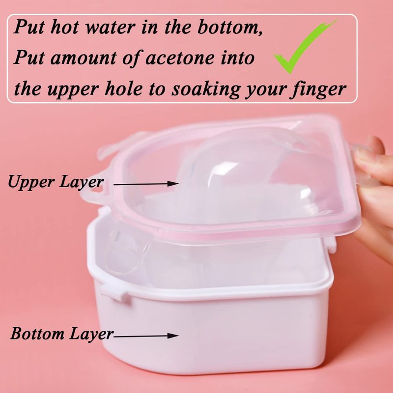 - Durable Finger soaking bowl with double layer design, You can pour your acetone remover into upper tray directly. You also can pour hot water into the bottom layer bowl to speed up the process.