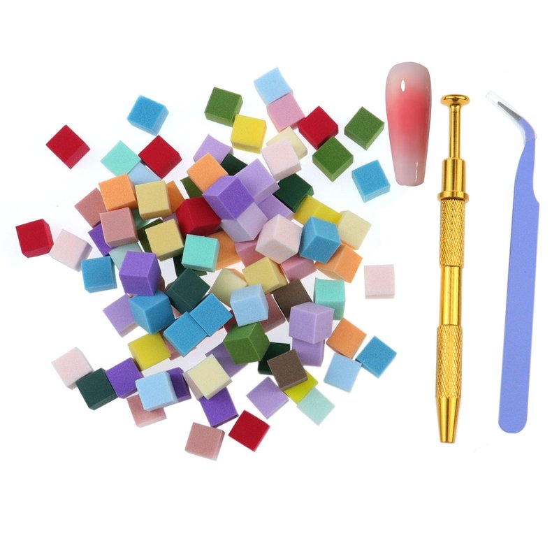 - What is in the box---There are 100pcs mini soft sponges for ombre nail art. You will also get 1pcs gold grabbing pen Sponge set, and 1pcs nail art tweezer.