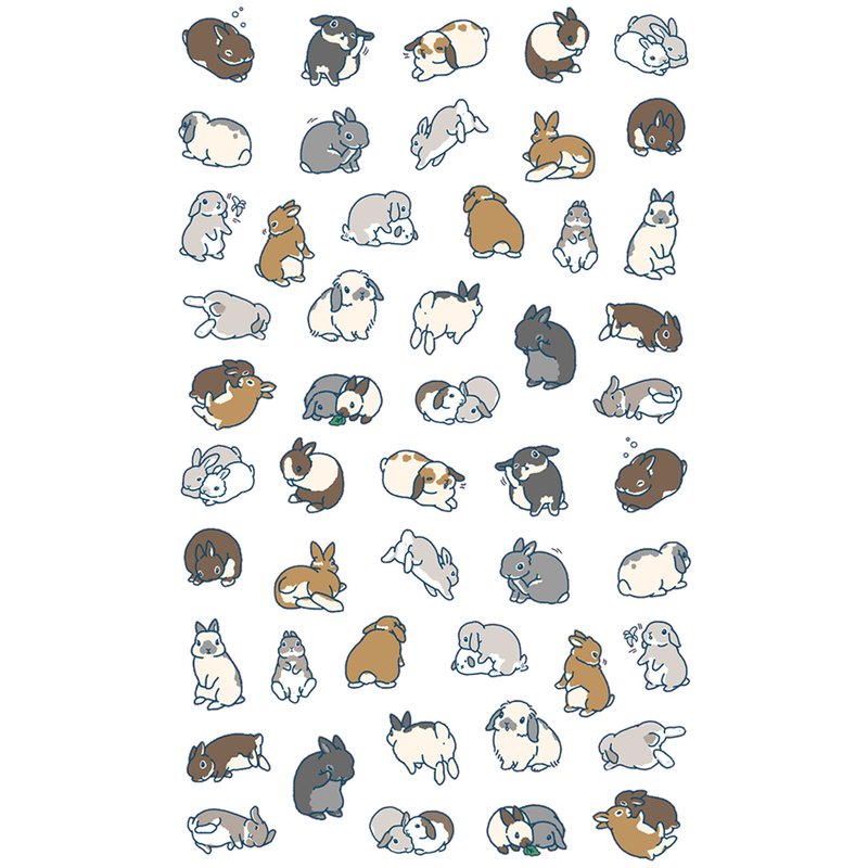 Nail Stickers Decal Transfers (5 Sheets) FLONZNAIL Cute Rabbit Bunny Playing Vintage Illustration