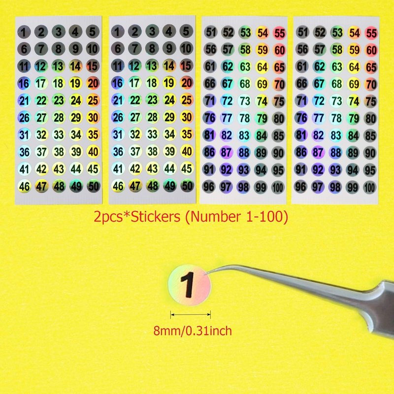 - Holographic Number Stickers. - The number stickers are made of high quality material which is waterproof, durable and no-fading. Each number sticker is 8mm in diameter and can easily be applied to the top, side or anywhere else of your nail polish bottle.
