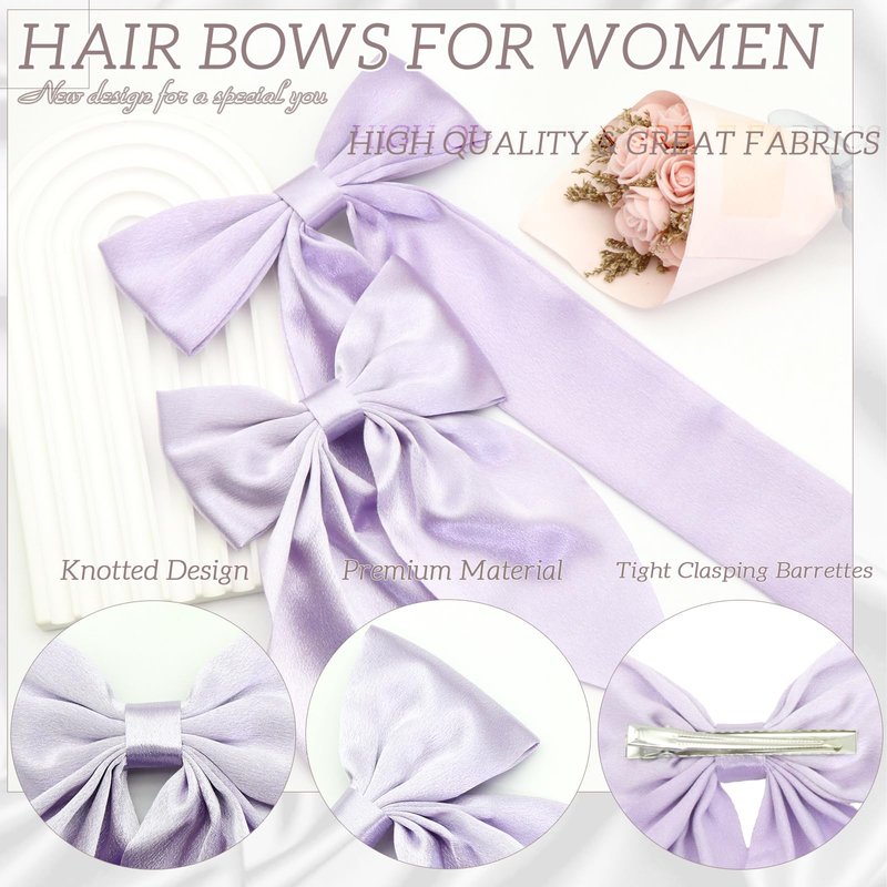 - ❤️Soft Satin Hair Ribbon:The 2PCS purple silky hair bows clips are so soft touching and smooth satin bow, made with high quality satin fabric and metal alligator clip,two styles for toddler girls, teen girl and women.