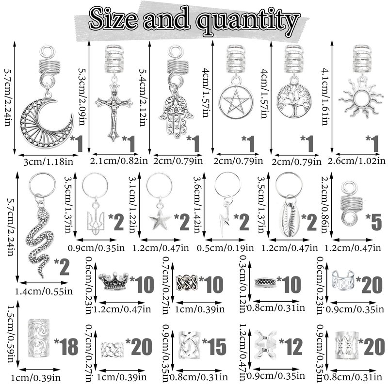 - Material:186PCS Viking Beads Hair Tube Jewelry for braid charms are made of alloy with plated technique, that light weight and not easy to be broken or faded.Our vintage silver braid accessories can bring you a variety of wearing experiences and make you look more eye-catching in the crowds.