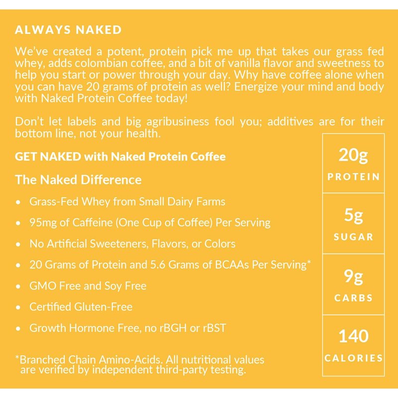 NAKED Vanilla Latte Protein Coffee - Premium Instant Coffee - Protein Shake, Iced Coffee, Protein Drinks, Delicious Keto Friendly and Gluten Free, 17 Servings