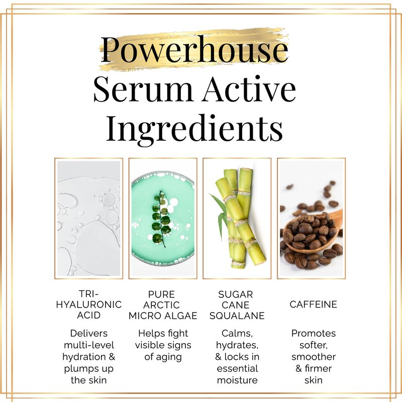 - POWERHOUSE SERUM-ACTIVE INGREDIENTS - This foaming face wash & oil cleanser is infused with tri-hyaluronic acid, caffeine, plant-based squalene, arctic micro algae, & other natural ingredients to reinvigorate the skin from head to toe. Our all natural body wash for women helps improve dry, rough-textured skin with one cleansing application.