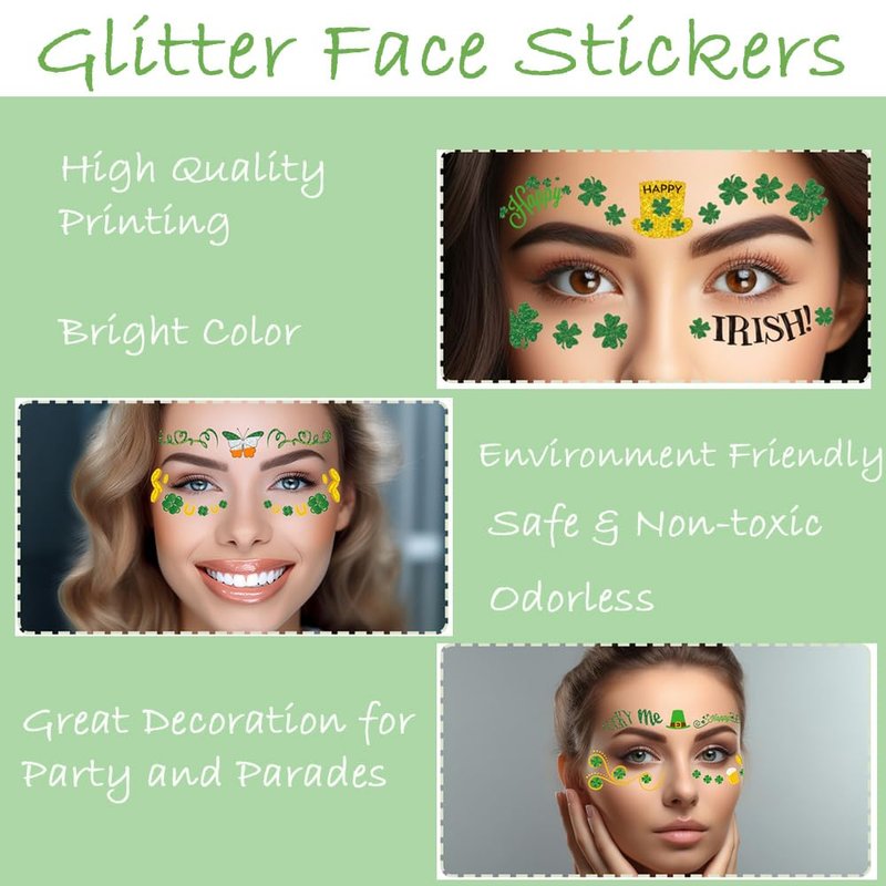 - đ ăWide ApplicationăThe St. Patrick's Day stickers are suitable for most parts of your body, such as face, cheeks, arms, forehead, hands, ankles and more; Besides, these stickers can be applied in tattoo shops, beauty salons and families for personal use.