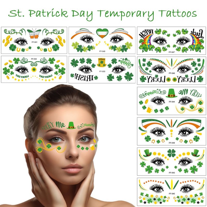 - đ ăPackage ContentăYou will get 10 sheets St. Patrick's Day temporary tattoo stickers. 10 sets face tattoos with different styles are unique and classic for kids and adults. Enough quantity and various designs can meet your St. Patrick's Day Parade or party decoration.