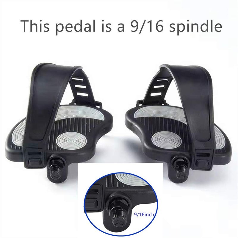 - ☆ HIGH QUALITY MATERIAL - The pedals come with a pair adjustable rubber strap, allows you to custom the length to accommodate the shoe you using. The high quality strap easily survive the rigorous pedaling. Adjust the pedal and strap to fit your position before use. This pedal is a 9/16 spindle. Please note (you need to know the correct model you need before ordering so you get the right pedal).