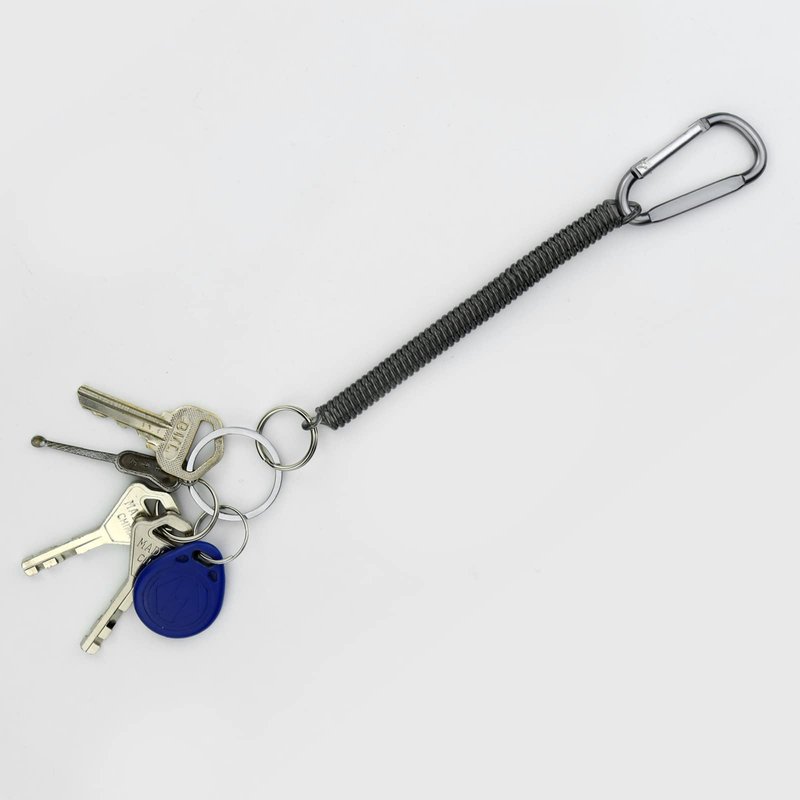 - Feature Design:The stainless steel ring is used to cover keys, purses or fishing rods, pliers, rulers and other things, the carabiner on the waist, backpack, boat, and stretch the spring rope to connect accessories or other small tools
