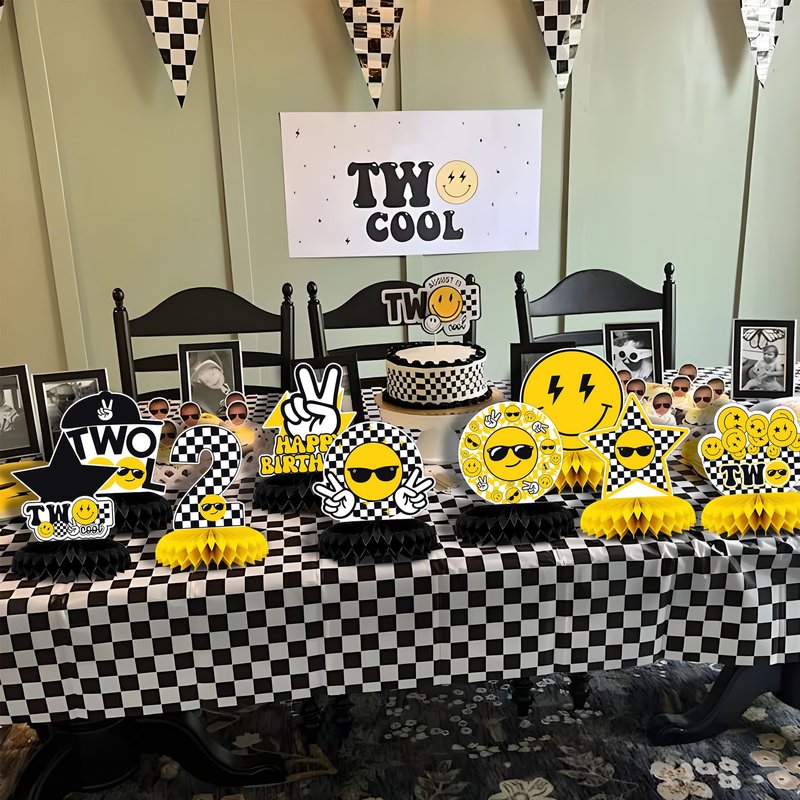 NANAGALI 9 Pcs Two Cool Honeycomb Centerpiece Two Cool Birthday Party Decorations - Happy Face 2nd Table Toppers Centerpieces Birthday Party favors for Boys