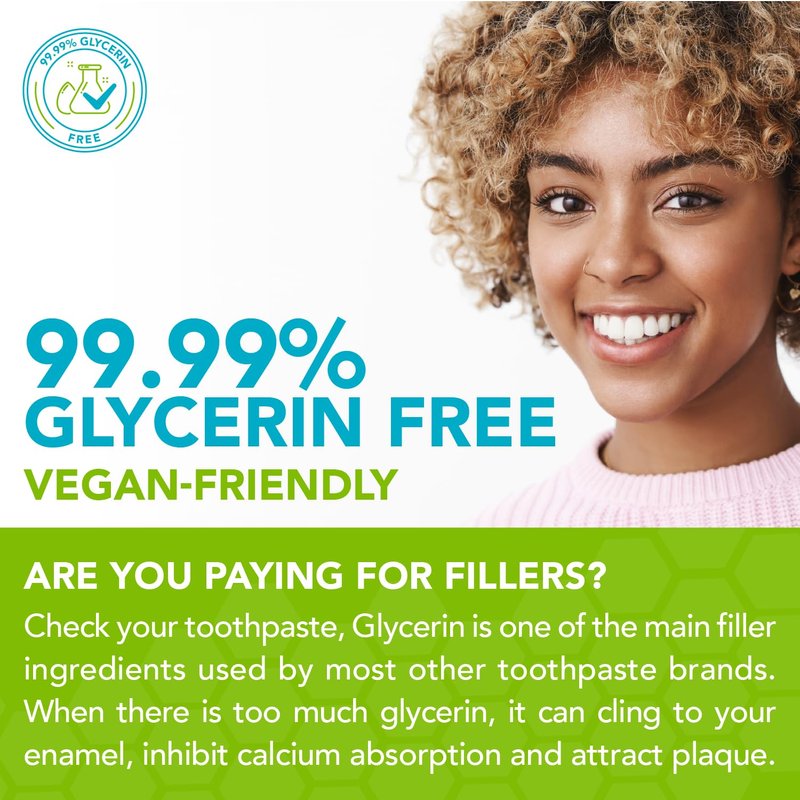 - 20 PLUS POTENT INGREDIENTS: Our nano-hydroxyapatite toothpaste is packed with loads of natural ingredients, like Xylitol for anti-cavity properties, organic aloe for natural healing, sea salt to tighten gums–it is free of gluten, soy, dairy and is 99.99% glycerin free. This fluoride free sensitive toothpaste is also free of chemical fillers, harsh whiteners, SLS, animal or petroleum products. As we don’t use animal products, this makes a great vegan friendly toothpaste.