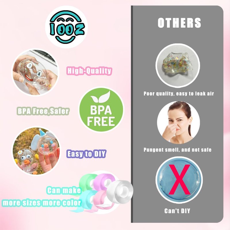 - Infinite Creativity: The Nano tape bubble kit is a highly creative toy that allows you to shape it into different sizes and shapes of bubbles or stress-relief toys. You can also add various materials such as glitter, beads, etc. to create unique works.