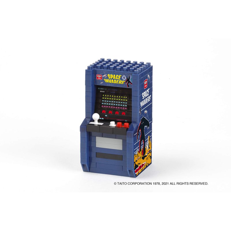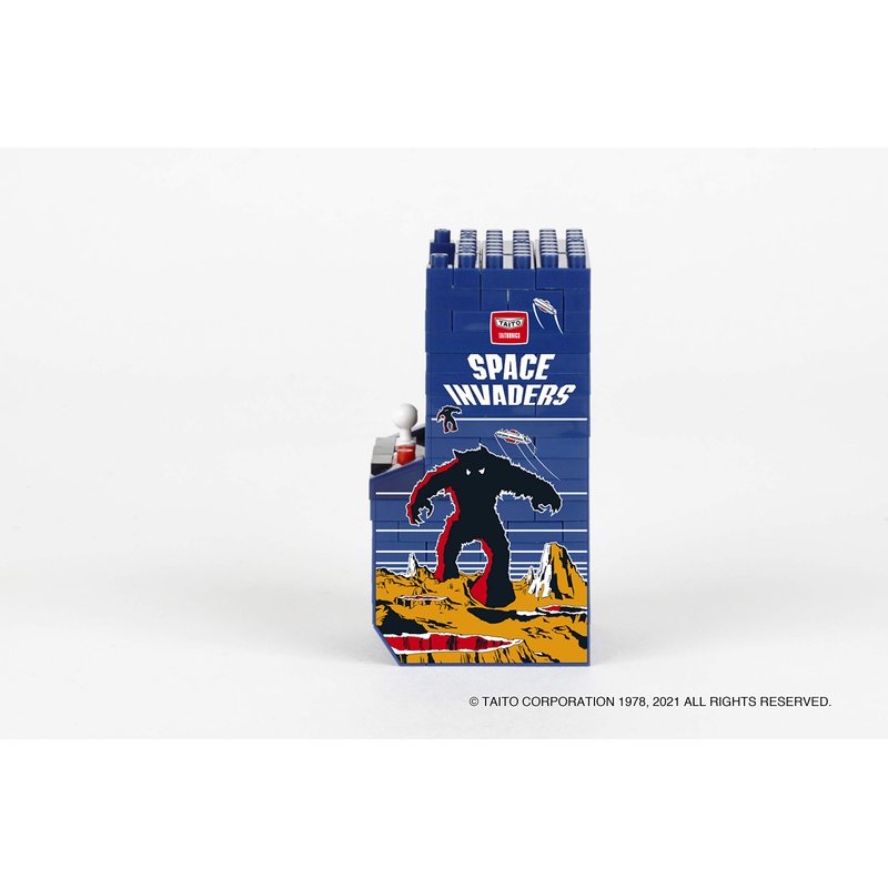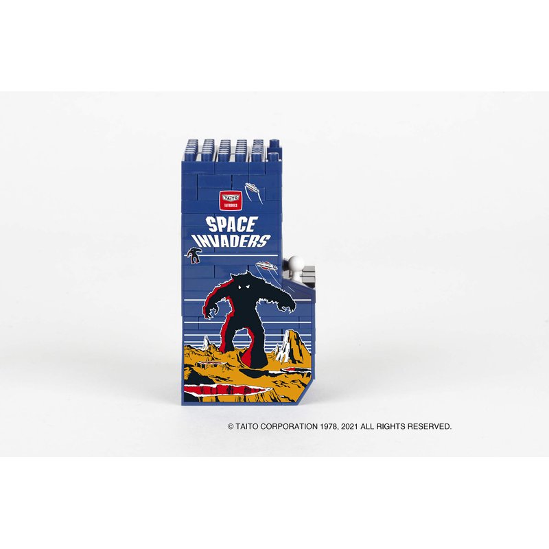 - Space Invaders Arcade Cabinet from Nanoblock's Character Collection series stands approximately 2.43" tall and has 200 pieces