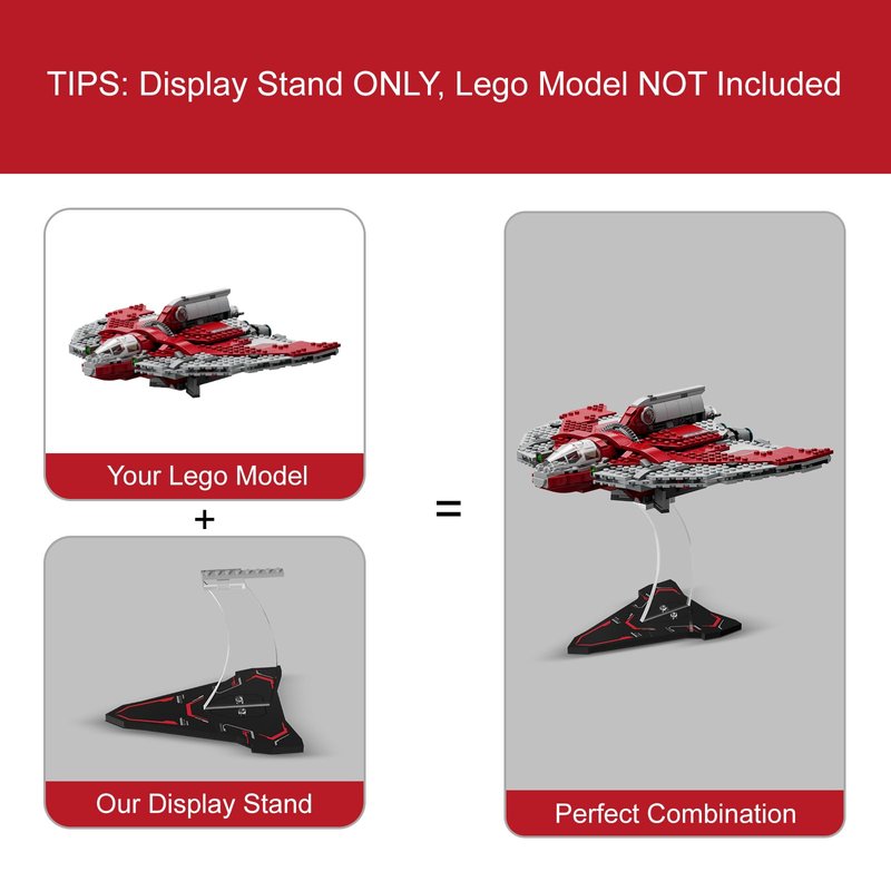 - 【Only Display Stand, Model Not Included】Specially designed for Lego Star Wars Ahsoka Tano’s T-6 Jedi Shuttle Building Set. It can hold your model stable on your table to display and show your model in any view of sight.