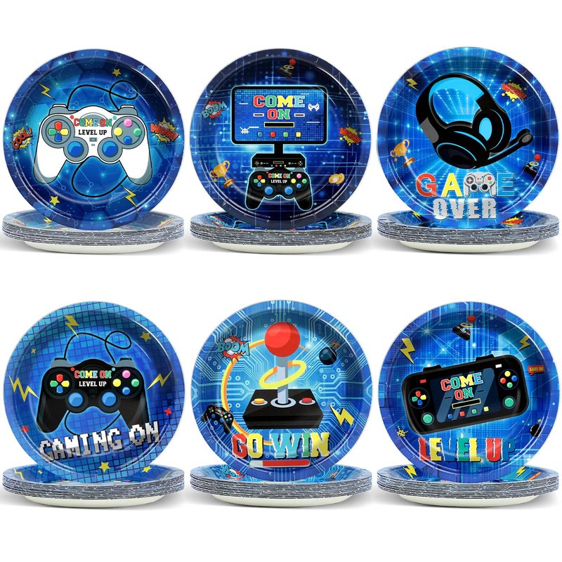 - Package includes: Our video game party plates set includes 60 pieces of 7-inch plates, featuring 6 unique designs with 10 plates of each type. Ideal for gaming birthday party supplies and gamer-themed birthday party supplies, these plates will delight guests of all ages.