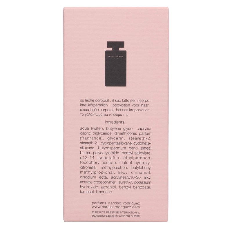 - Narciso Rodriguez for Her 6.7 oz Her Body Lotion: Buy Narciso Rodriguez Body Lotions - Narciso Rodriguez For Her is a true modern fragrance that captures sophistication and intrigue. It first comes on very subtle with honey flower and amber. At the heart is Egyptian Musk and lingers with rare woods.