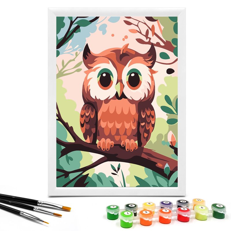 Nariolar Paint by Numbers for Kids Ages 4-8 with 7X9.5 inch Pre-Printed Cardboard,12 Acrylic Paint Pots and 3 Painting Brushes, Craft Gift Room Decor for Children,(Cute Owl)