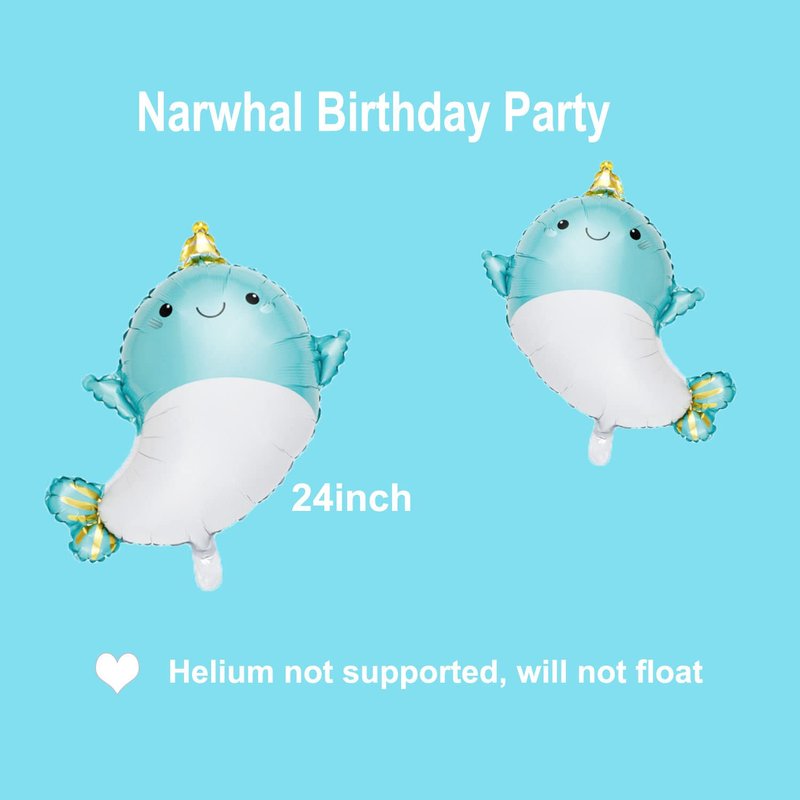 - 🐳Size of Narwhal Balloons: The Narwhal Foil Balloons Size is 24inch and the Narwhal theme latex balloons size is 12inch. Very cute narwhal series balloons that would be great to adorn our birthday party and add to the deep seavibe.