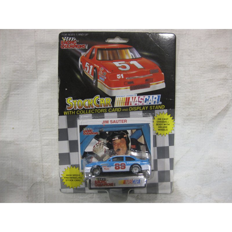 NASCAR #89 Jim Sauter Evinrude Racing Team Stock Car With Driver's Collectors Card And Display Stand. Racing Champions Black Background Red Series 51 Car