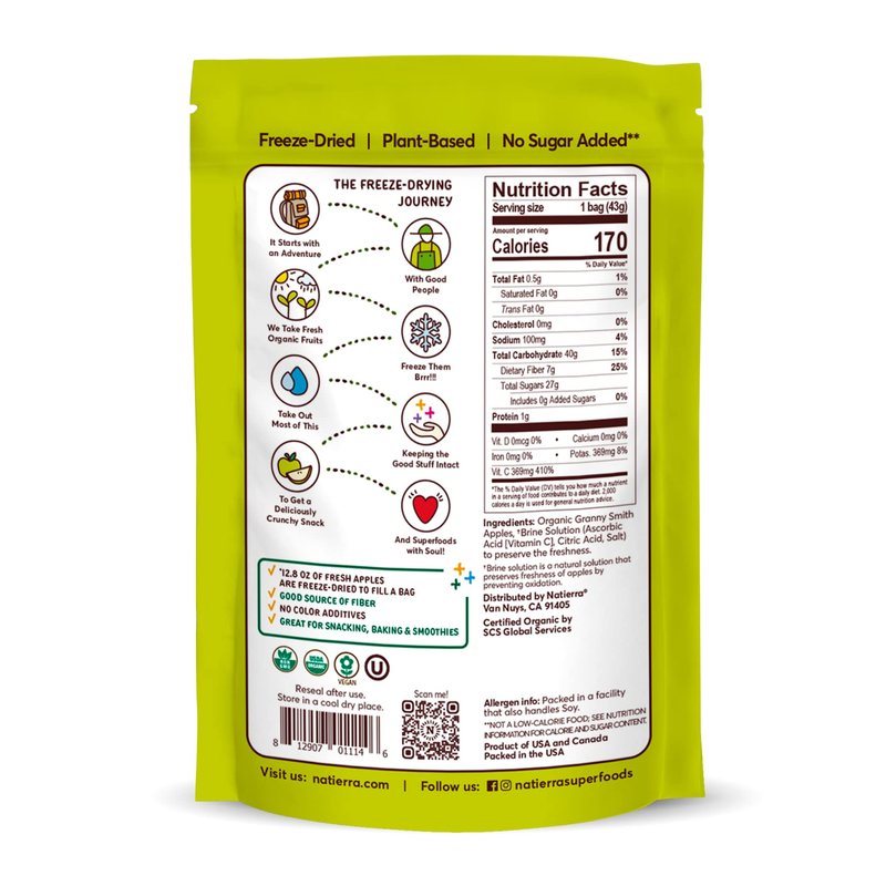 NATIERRA Nature's All Foods Organic Freeze-Dried Apples | Non-GMO & Vegan | 1.5 Ounce