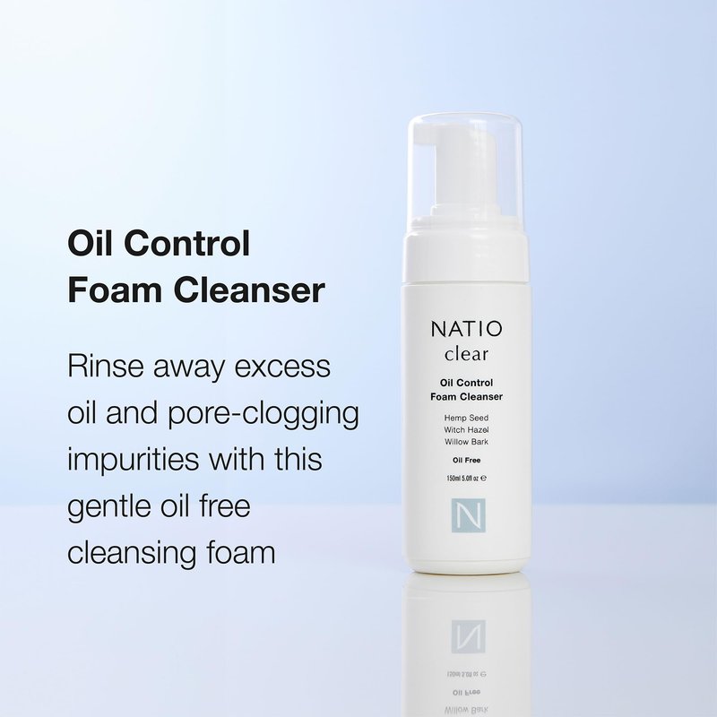 Natio Australia Clear Oil Control Foam Cleanser, 5 ounce - Acne Face Wash - Face Cleanser with Tea Tree, Witch Hazel - For Oily, Acne Prone Skin