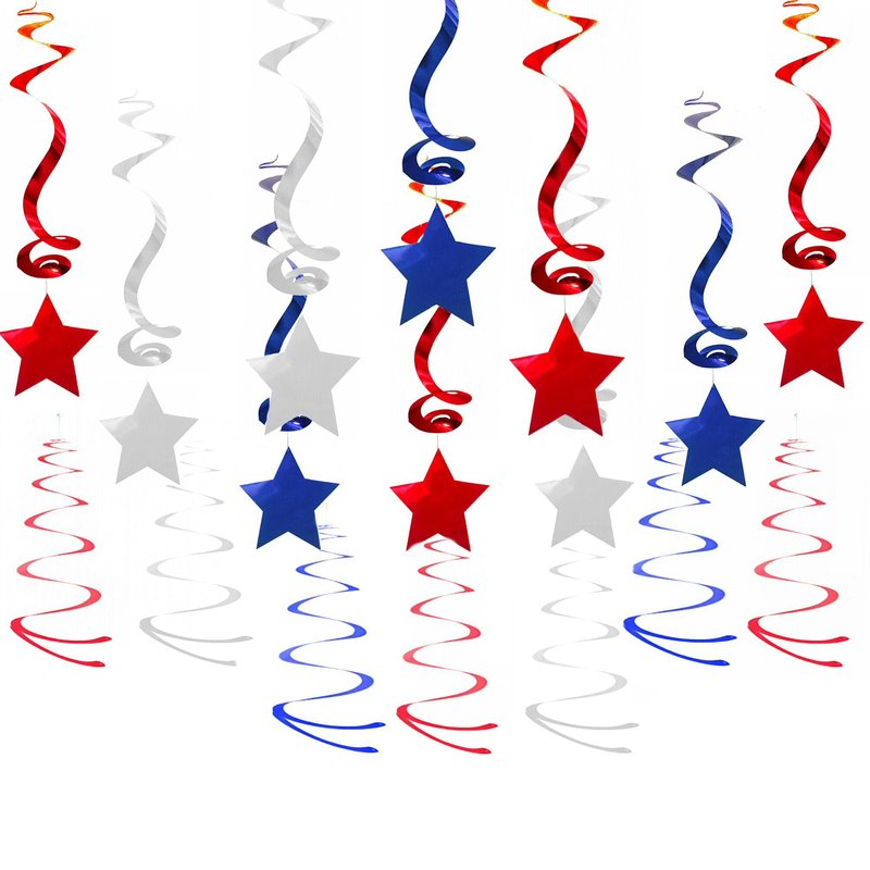 - 4th of July Stars Hanging Swirl Decoration. Prefect patriotic decorations for Memorial Day, Veterans Day celebration, Labor Day party, Graduation Celebration, or other patriotic events