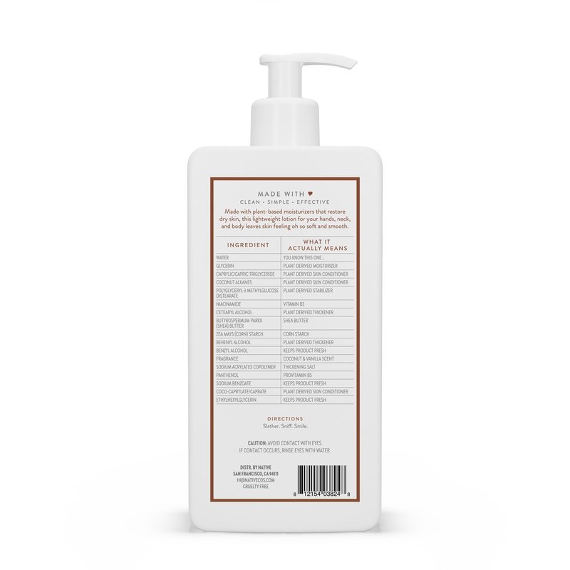 Native Body Lotion Contains Naturally Derived Plant-Based Moisturizers for Women and Men | Restores Dry Skin, Coconut & Vanilla, 16.5 fl oz