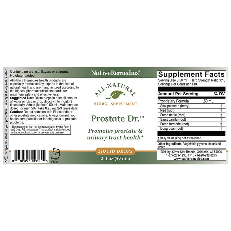 Native Remedies Prostate Dr. - All Natural Herbal Supplement Supports Prostate Gland Health and Urinary Tract Functioning - 59 mL