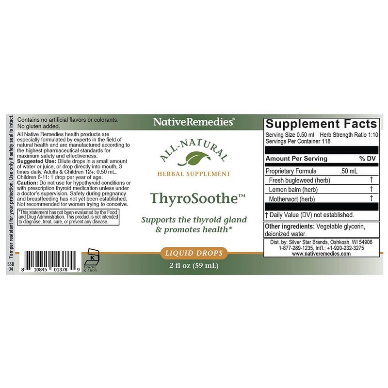 Native Remedies ThyroSoothe - All Natural Herbal Supplement Soothes The Thyroid Gland - Supports Systemic Balance in The Endocrine System and Thyroid Gland - 59 mL