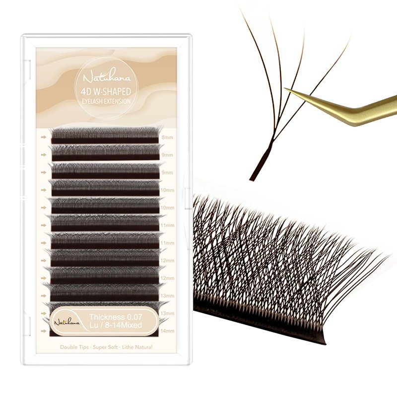NATUHANA W Shaped Clover Eyelash Extension 4D Premade Fans 0.07mm LU Curl 8-14 Mixed Tray Volume Lash Cluster W Lashes Supplies Lash Extensions (4D brown;0.07 LU, 8-14 MIX)