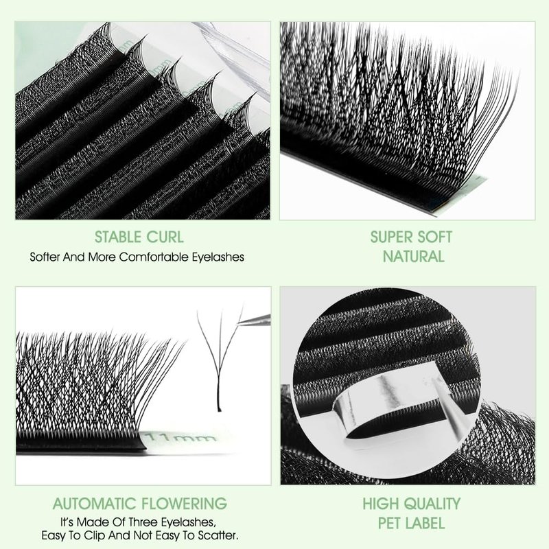 - ❈[Easy Fanning Cluster]The newly upgraded new technology has produced these 3D/4D/5D/6D/7D/8D/Dual Core-3D premade fans lash cluster.Multiple extension roots bonded together automatic form blooming flowers,greatly save your time and improve grating efficiency,more easily to make dense and thick charming eyes look.