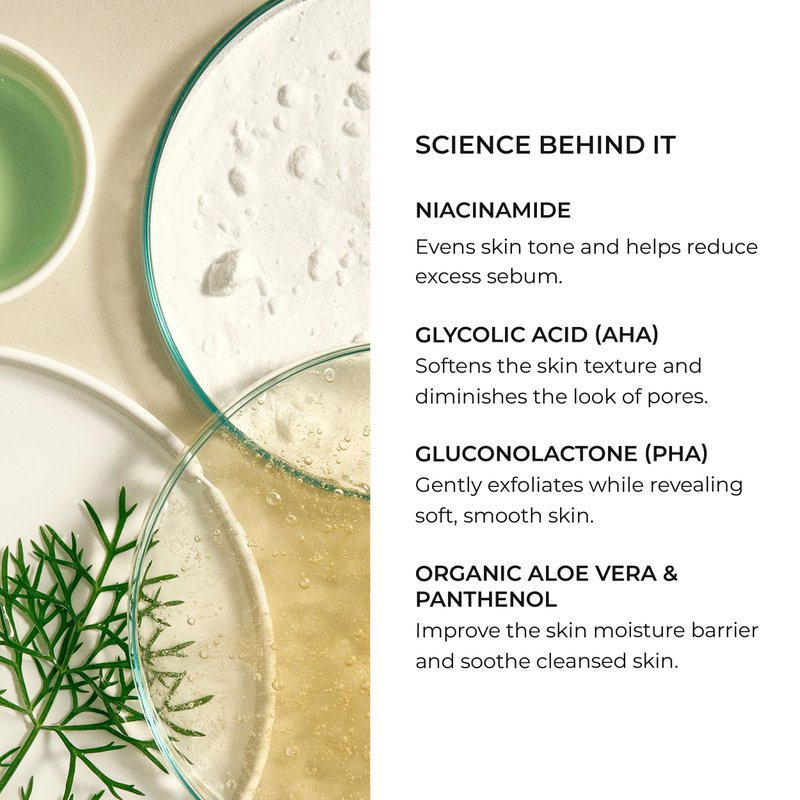 - Gentle Renewal: Features AHA and PHA for gentle exfoliation, improving skin texture and pore appearance