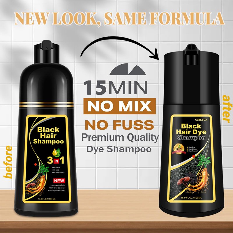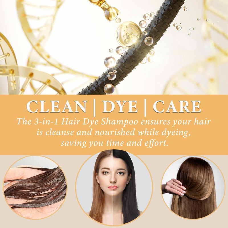 New Package Hair Dye Shampoo 3 in 1 for Women & Men, Covers Gray Hair in 15 minutes. In 3 Simple Steps, apply this hair dye just like a shampoo. At-Home Hair Color Shampoo, with safe and effective ingredients for vibrant, dimensional, salon-worthy color. Suitable for all levels of grays and all hair types and textures. Blends grays with your original hair color and fades naturally in 3~4 weeks.