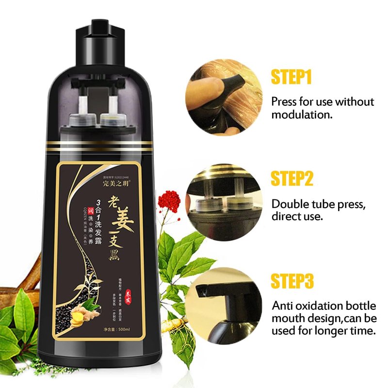 - 3 In 1 Hair Dye Shampoo-Choose from 3 different shades ranging from Brow to Black. You can choose any color you like . Gloves included and is designed to distribute color with ease. Made of plant extracts, no scalp irritation, environmentally friendly and no harm to your health.