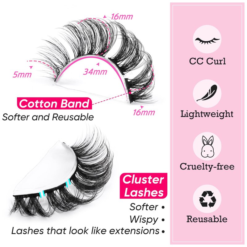 - 【New style strip lash】: The individual cluster lashes are great for a natural look or glam look. You can apply cluster lashes in ascending order which gives a nice cat-eye effect. The individual lashes blend effortlessly with other lengths and your own lashes and match more possibilities.
