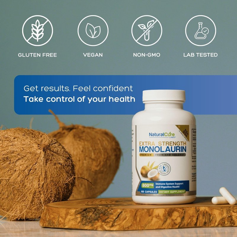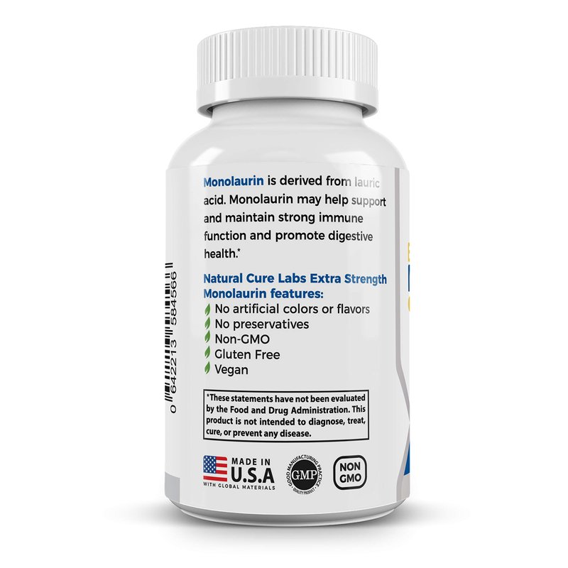 Natural Cure Labs Extra Strength Monolaurin 800mg, 100 Capsules, 33% More