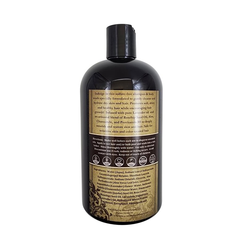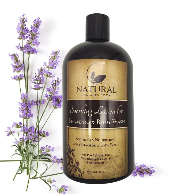Natural Escapes Soothing Lavender Shampoo & Body Wash | Organic Shampoo for Dry, Frizzy or Color Treated Hair | Sulfate Free Shampoo & Body Wash | 16oz