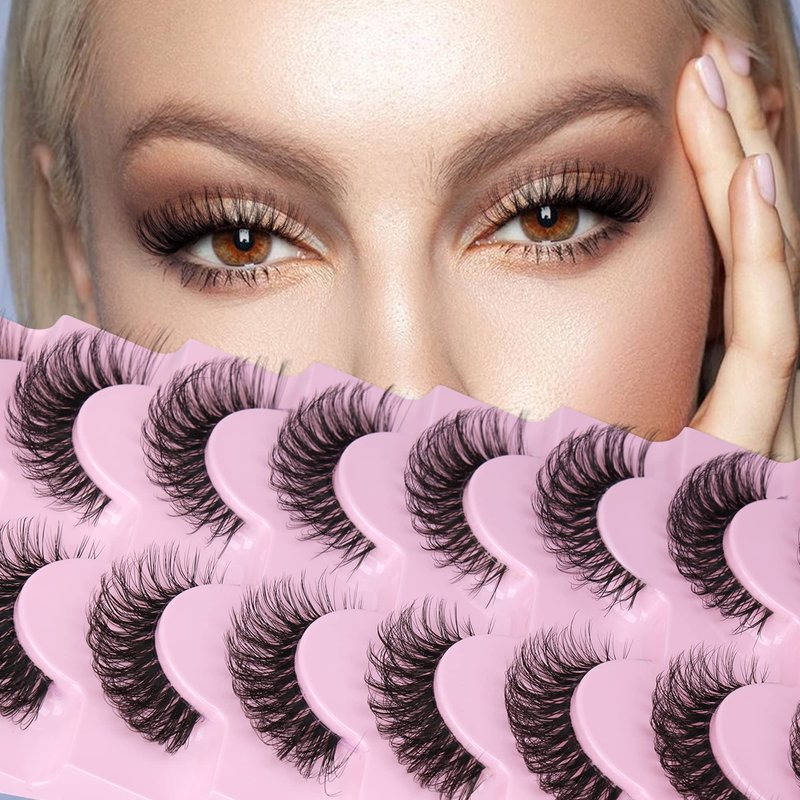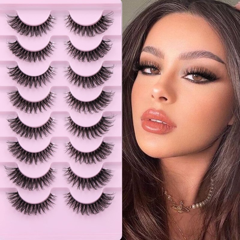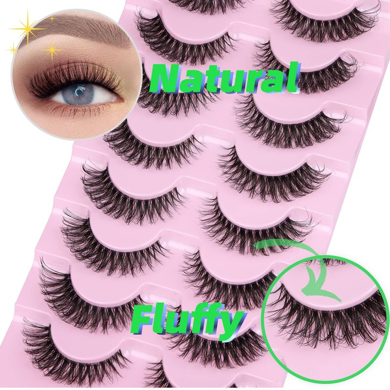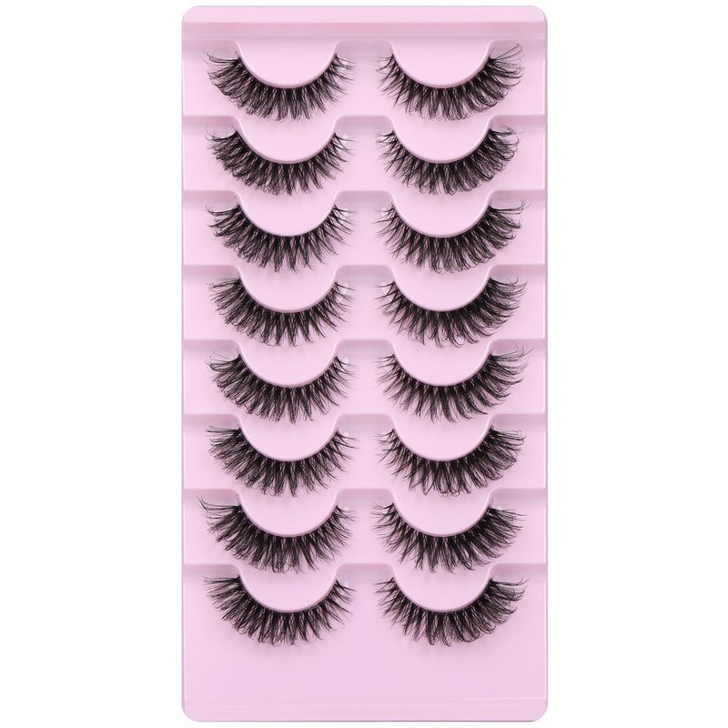 Natural False Eyelashes Wispy Mink Lashes Cat Eye Lashes Pack Fluffy Eyelashes 8 Pairs 14 mm Clear Band DD Curl Strip Fake Eyelashes By TNFVLONEINS