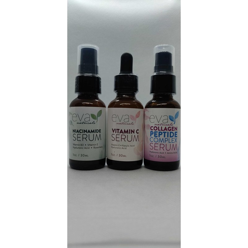 - Convenience In A Bottle: Eva Naturals is proud to bring you three powerful anti-aging skin serums in one convenient package! Great for anyone new to skincare trying to establish a routine, and easy to add into an existing routine!