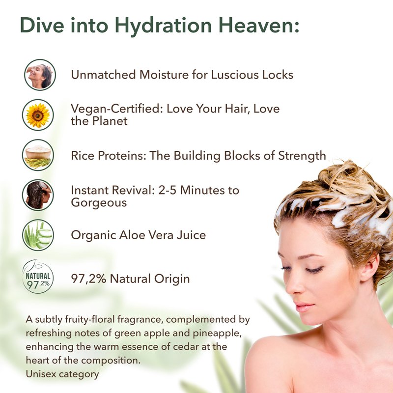 - Hydrating Hair Mask with Organic Aloe Vera Juice, rich in vitamins and amino acids, deeply moisturizes, strengthens hair, and promotes healthy growth for dry and damaged hair.