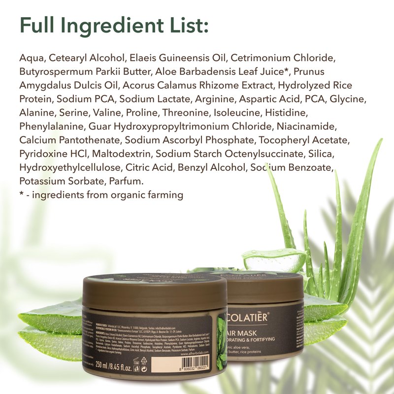 - ECOLATIER Organic Aloe Vera Hair Mask penetrates deeply, restoring hair along its length. This organic hair mask with aloe vera juice leaves hair smooth, shiny, and easy to manage.
