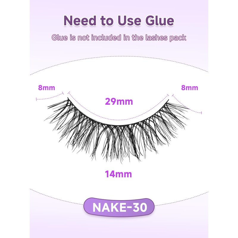 - Wispy Eyelashes Natural Look: False lashes length: 8-14 mm, glasses friendly. Natural eyelashes, adding volume to your eyelashes, brighter and attractive! Effortlessly get a “naked” makeup look in daily life! Small eyes friendly
