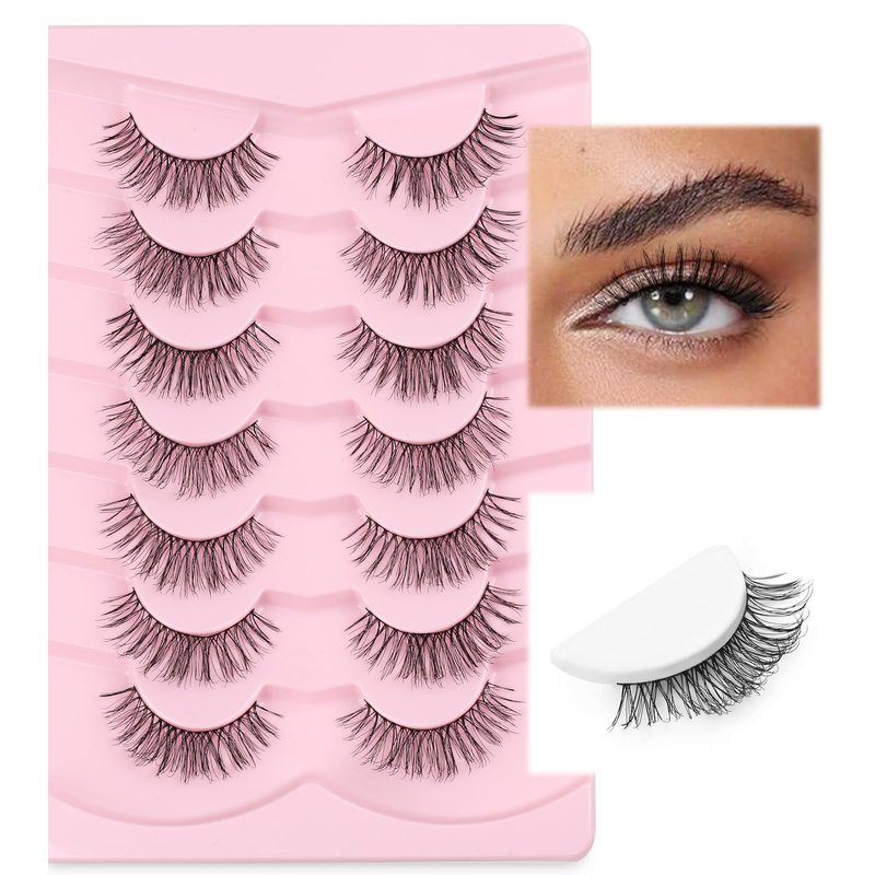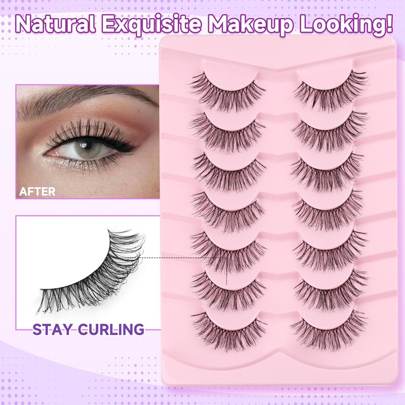 Natural Lashes False Eyelashes Wispy Eye Lashes 13mm Short Eyelashes with Thin Memory Band Volume Wispy Lashes Soft Strip Lashes Pack C Curl Natural Eyelashes Fake Lashes 7 Pair EVENTILL