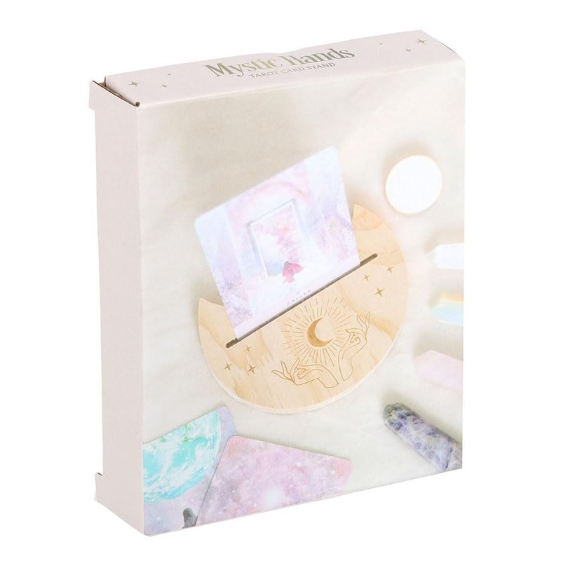 - Enhance your spiritual space with a touch of mysticism using our wooden tarot card stand, featuring a unique hands design that adds a mystical flair to any room.