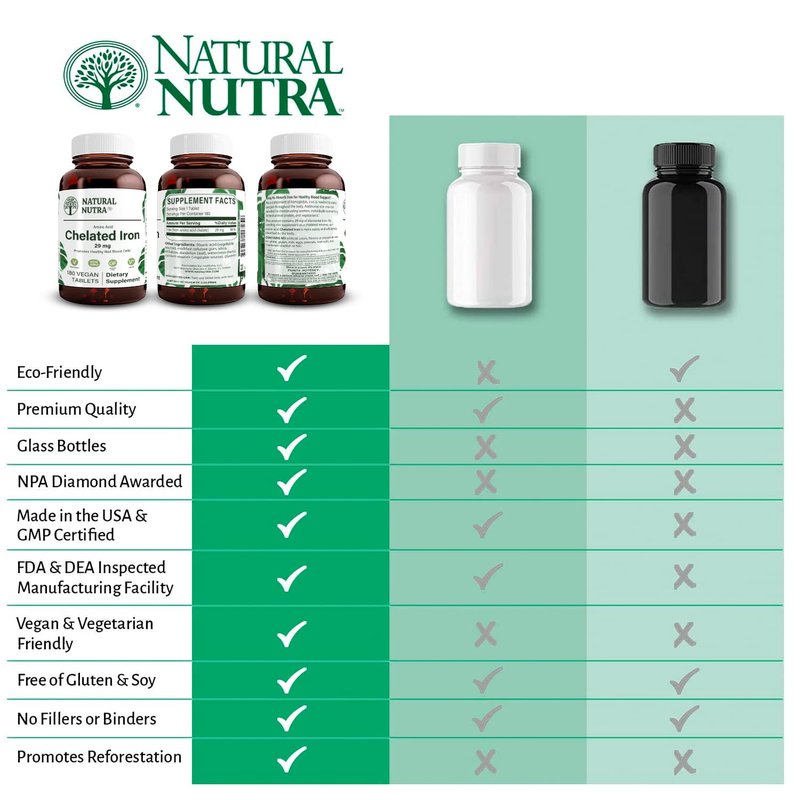Natural Nutra Chelated Iron Supplement for Men and Women, Nails Health, Promotes Optimal Absorption, Help to Improves Hair Growth, Skin Health, 180 Tablets