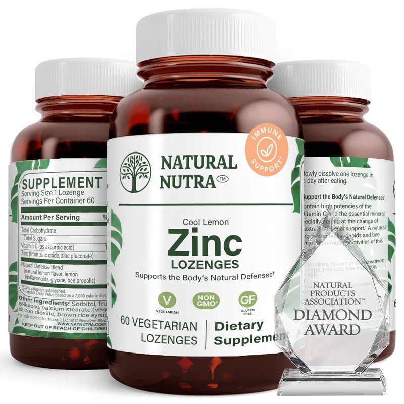 Natural Nutra Zinc Lozenges with Vitamin C, Lemon Flavor, Immune Support, Fortified with Bioflavonoids and Bee Propolis, Sublingual Zinc Gluconate, 60 Vegetarian Zinc Melts