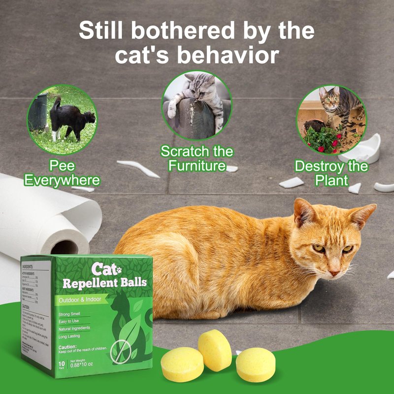 Natural Peppermint Cat Repellent Balls, Outdoor & Indoor Cat Deterrent to Protect Gardens, Keep Cats and Dogs Out of Patio and Yard, 10 Packs