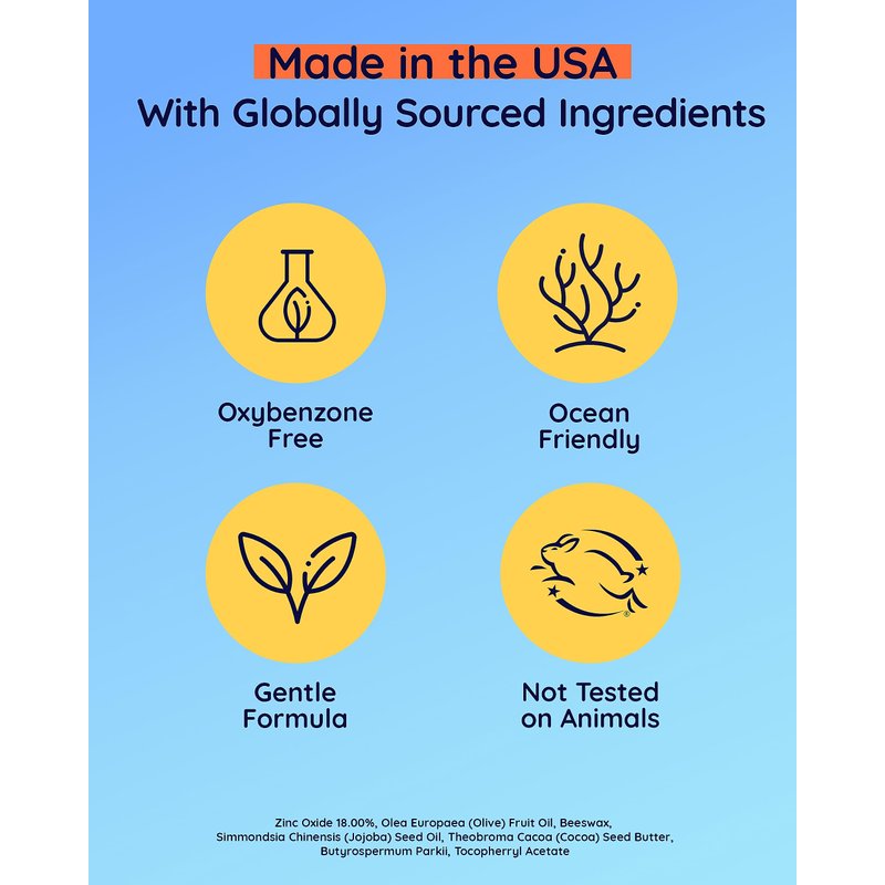 - Our kids sunscreen stick is packed with a potent 18% Zinc Oxide to offer a broad spectrum of protection from UVA and UVB rays; The mineral-based defense will shield skin from sunburn while preserving much-needed hydration