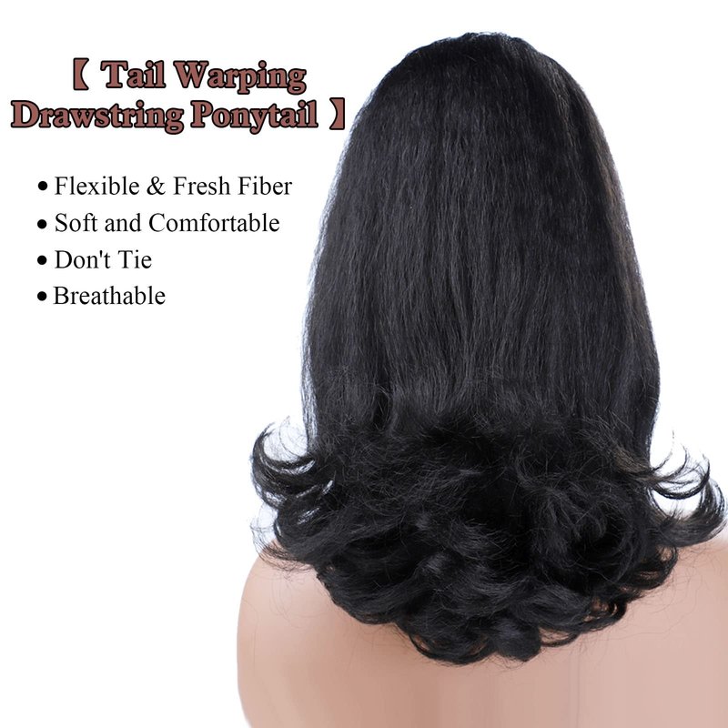 - 【Tail Warping Black Fake Ponytail Advantage】Compared with claw ponytail clip, drawstring ponytail is not unintentionally crushed and easier to place; It takes only a few seconds to finish with a gentle paste.