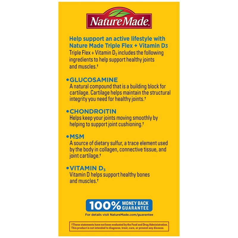 Nature Made TripleFlex Triple Strength Caplets with Vitamin D3, 120 Count for Joint Support